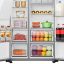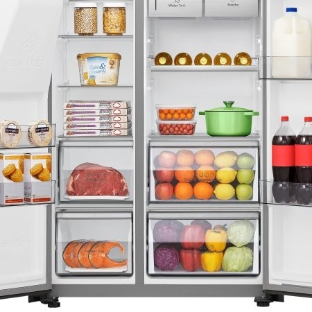 خطوط جدا کننده بخش یخچال از فریزر، زیبایی این محصول را دو چندان می کند. اگرچه یخچال فریزر دارای دو درب است و عملاً ساید بای ساید است؛ اما ظاهر چهار درب دارد و دسته درب به صورت فاصله بین خطوط تعبیه شده است. ظرفیت ۳۴ فوت واقعی یا ۸۱۹ لیتر بزرگ ترین ظرفیتی است که در میان یخچال فریزر ها می توانید در اختیار داشته باشید. کشو های بزرگ جای مناسبی برای سبزیجات، میوه و گوشت هستند. چرا که دما و رطوبت این بخش ها به طور جداگانه کنترل می شود. همچننی طبقه ها نیز جا دار و دارای بدنه محکم هستند.